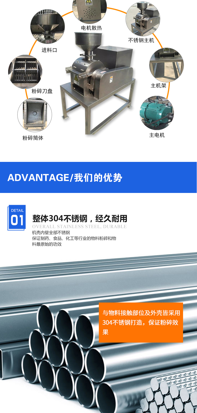 本機(jī)結(jié)構(gòu)簡(jiǎn)單,粉碎室拆裝與清洗方便,具有運(yùn)轉(zhuǎn)平穩(wěn)、移動(dòng)方便、噪音低、粉碎效果好等優(yōu)點(diǎn)。