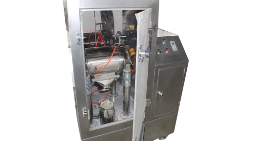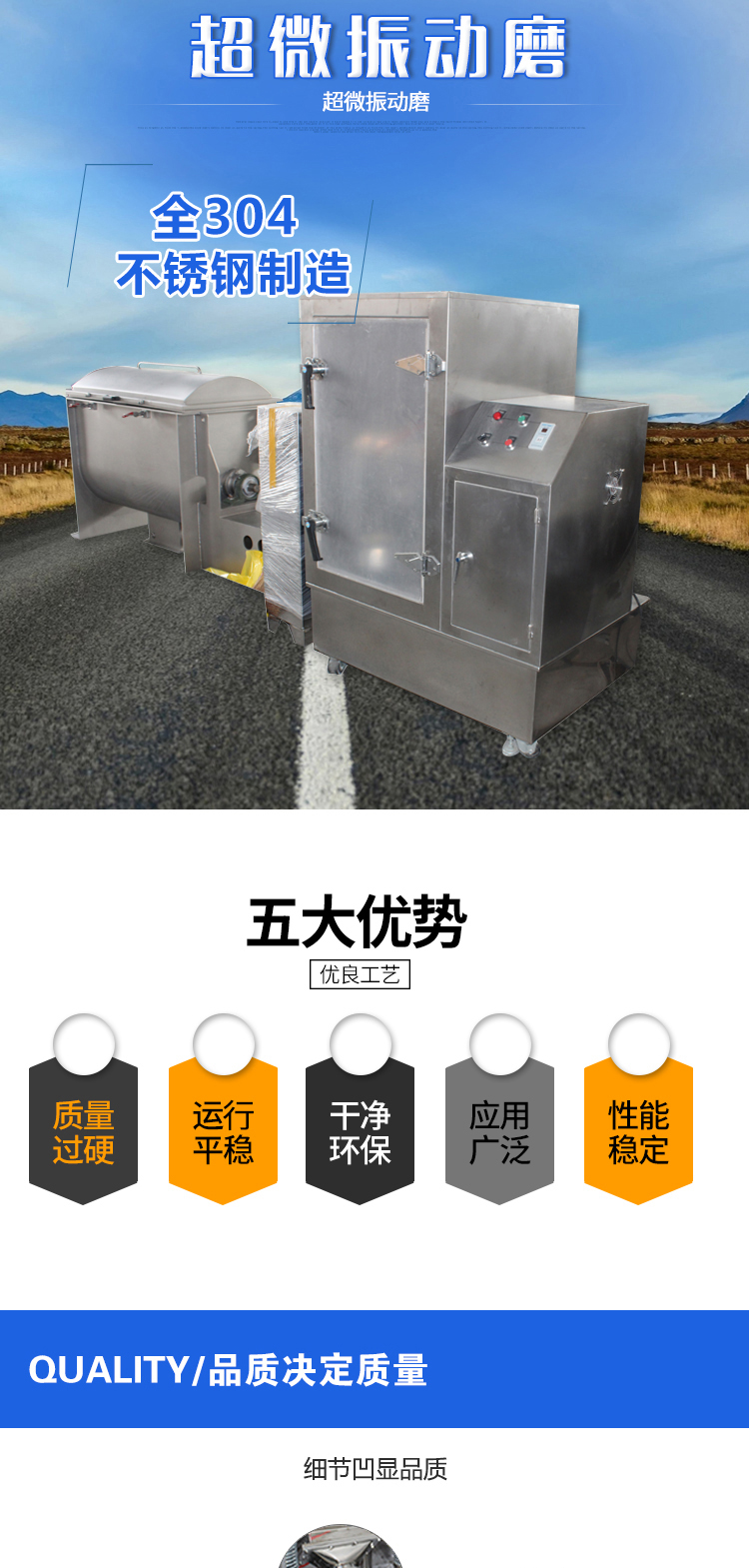 該機(jī)為臥式振動(dòng)磨,物料由加料斗進(jìn)入粉碎室,經(jīng)振動(dòng)將粉碎室內(nèi)的研磨棒與物料碰撞、研磨而獲得粉碎,該機(jī)配有水冷卻裝置,可控制粉碎室內(nèi)的溫度,整機(jī)按“GMP”標(biāo)準(zhǔn)設(shè)計(jì),采用不銹鋼制造,設(shè)備在全密封狀態(tài)下作業(yè),無粉塵飛揚(yáng),無環(huán)境污染。