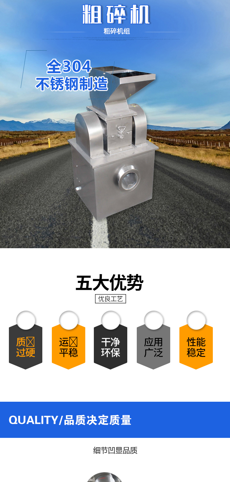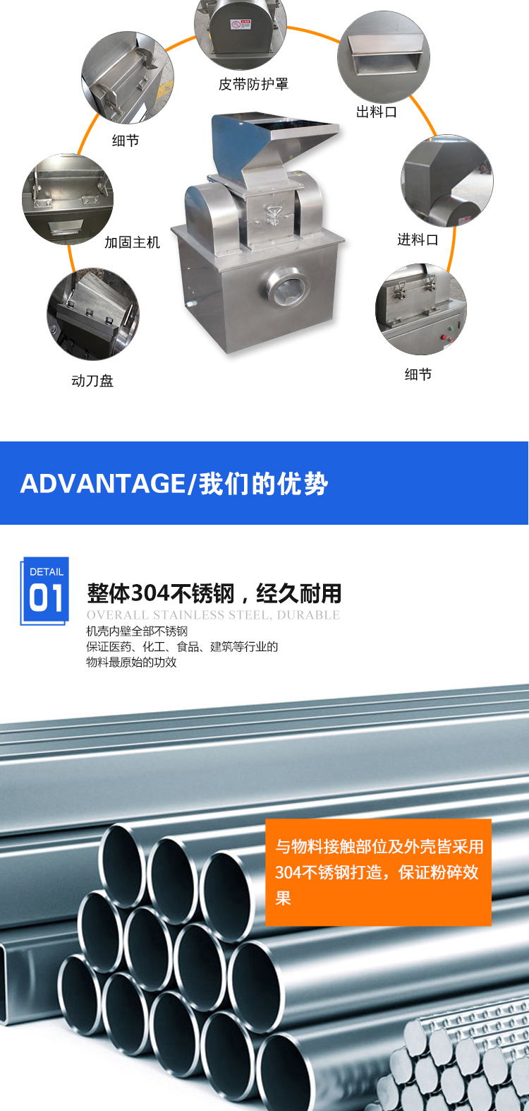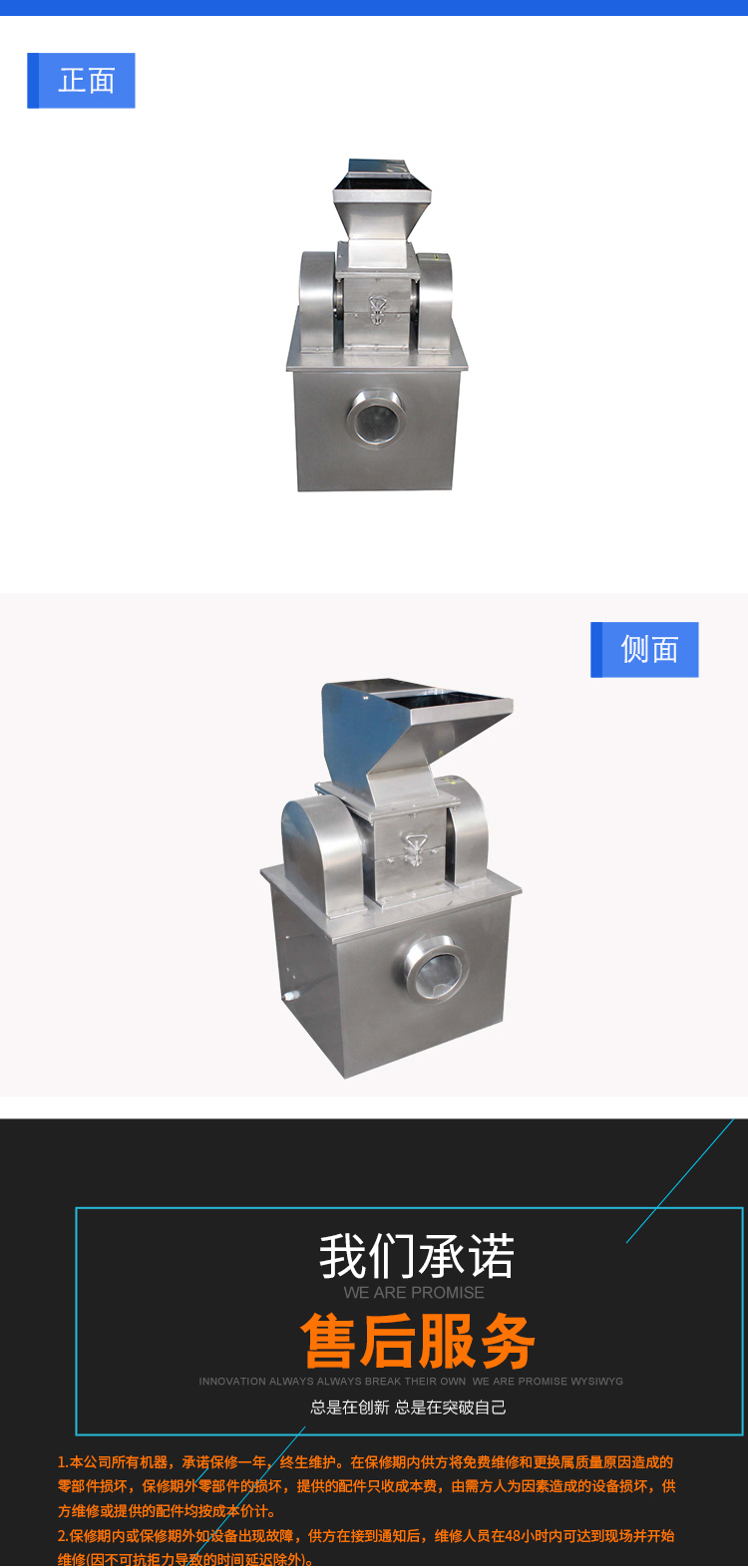 本機利用活動齒盤和固定齒盤間的相對運動,使被粉碎物經齒沖擊、摩擦及物料彼此間沖擊等綜合作用獲得粉碎。本機結構簡單、堅固、運轉平穩(wěn)、粉碎效果好,被粉碎物可直接由主機磨腔中排出、粒度大小通過更換不同孔徑篩網獲得。粉碎好的物料經旋轉離心力的作用,自動進入捕集袋,粉塵由吸塵箱經布袋過濾回收。該機按“GMP”標準設計,全部用不銹鋼材料制造,生產過程中無粉塵飛揚。且能提高物料的利用率,降低企業(yè)成本,目前已達到**水平。機殼內壁全部經機加工達到表面平滑,改變了前機型內壁粗糙、積粉現象,使藥品、食品、化工等生產全部達“GMP”標準要求整機全部用不銹鋼材料制造,該機已達到**水平。
