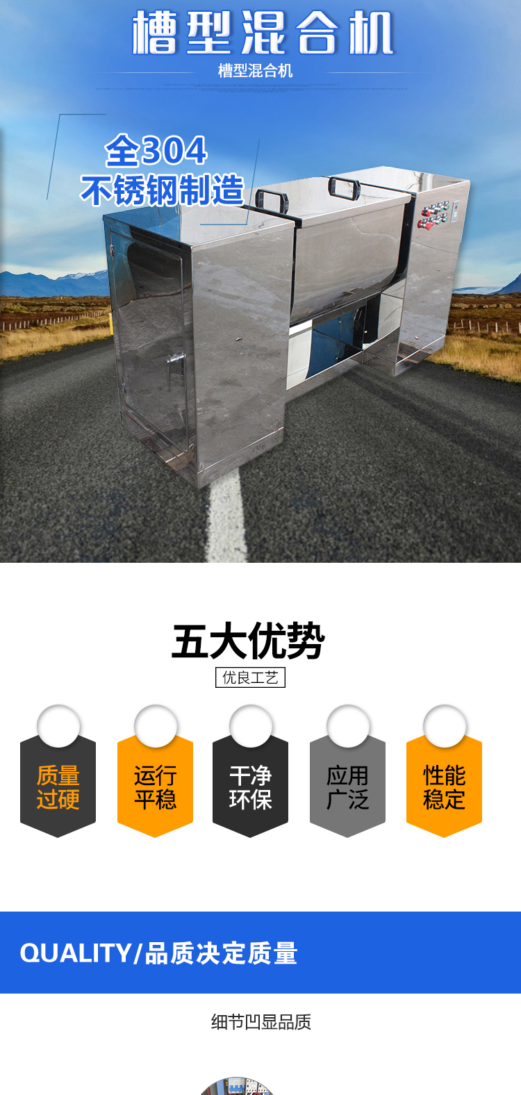本機為全不銹鋼臥式槽形混合機,在制藥、化工、食品工業(yè)中用于混合粉狀或糊狀的物料。