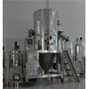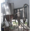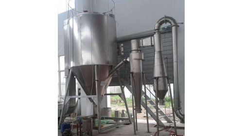 空氣經(jīng)過濾和加熱,進(jìn)入干燥器頂部空氣分配器,熱空氣呈螺旋狀均勻地進(jìn)入干燥室。料液經(jīng)塔體頂部的高速離心霧化器,旋轉(zhuǎn)噴霧成極細(xì)微的霧狀液珠,與熱空氣并流接觸在極短的時(shí)間內(nèi)可干燥為成品。成品由干燥塔底部和旋風(fēng)分離器中輸出,廢氣由風(fēng)機(jī)排空。
